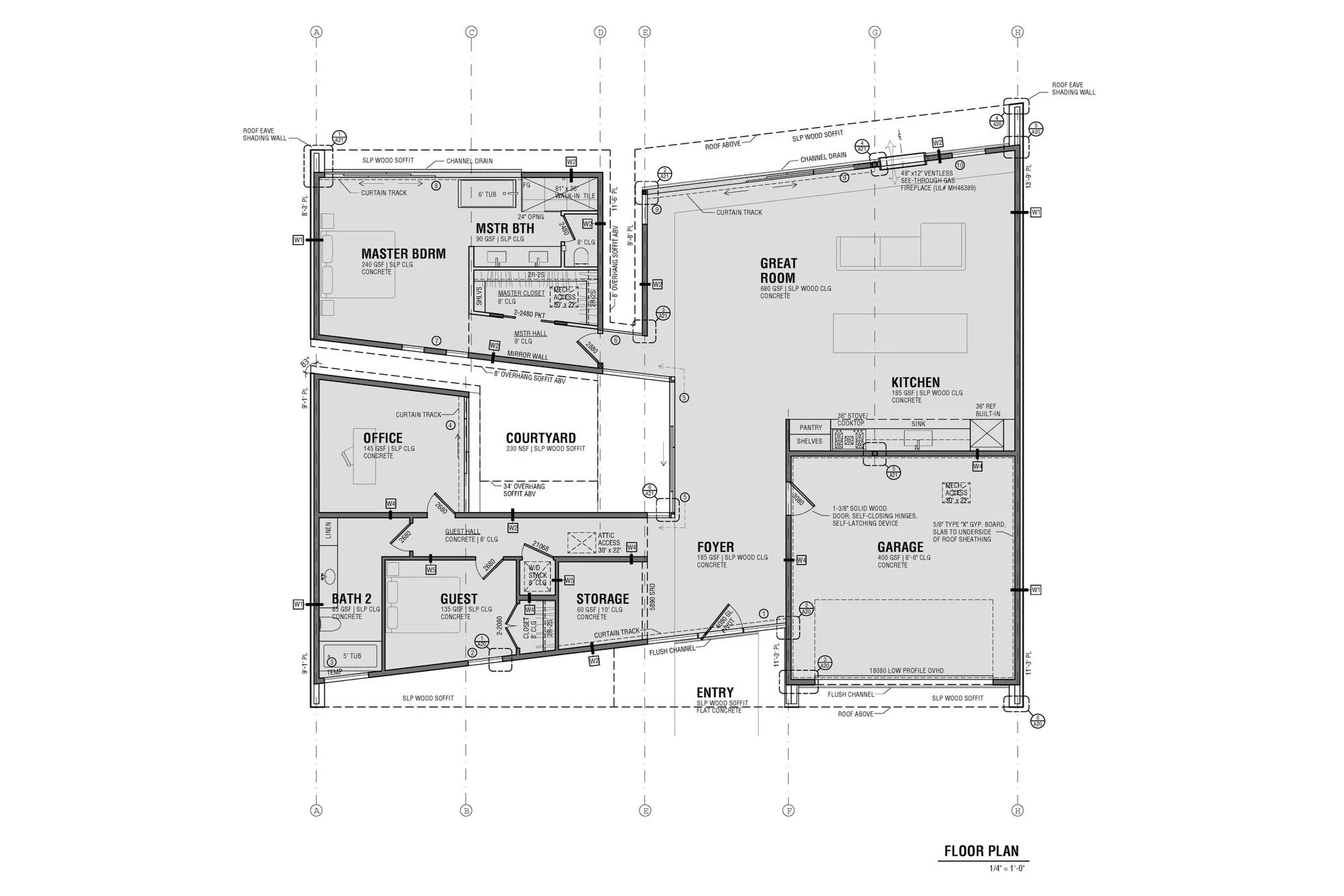 The Palm Desert House project is the result of a multi year collaboration effort with James Wright Gallery in Los Angeles to realize a hybrid residence/ art gallery space. The organizational strategy instills the experience of an intimate art gallery punctuated by light-filled incisions, an open courtyard, and outdoor poolside living spaces. The low-sloping roof lines and deep overhangs draw connections to the regional mid century modern residential typology. Building on this notion, the massing strategy avoids a traditional floor, wall, roof composition; instead blending all elements and shifting focus to a protective outer shell v. pristine interior elements. Secondary living spaces are separated from the main flexible entertaining and art viewing spaces through incisions in the massing and the courtyard. Sleekness and minimalism of architectural elements provide an experience of art gallery exhibition quality, scale and uniqueness.
